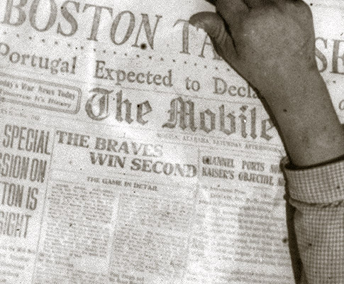 The newsboy in the photo is probably on Government Street, a main thoroughfare, about where the entrance to the Bankhead tunnel now is.