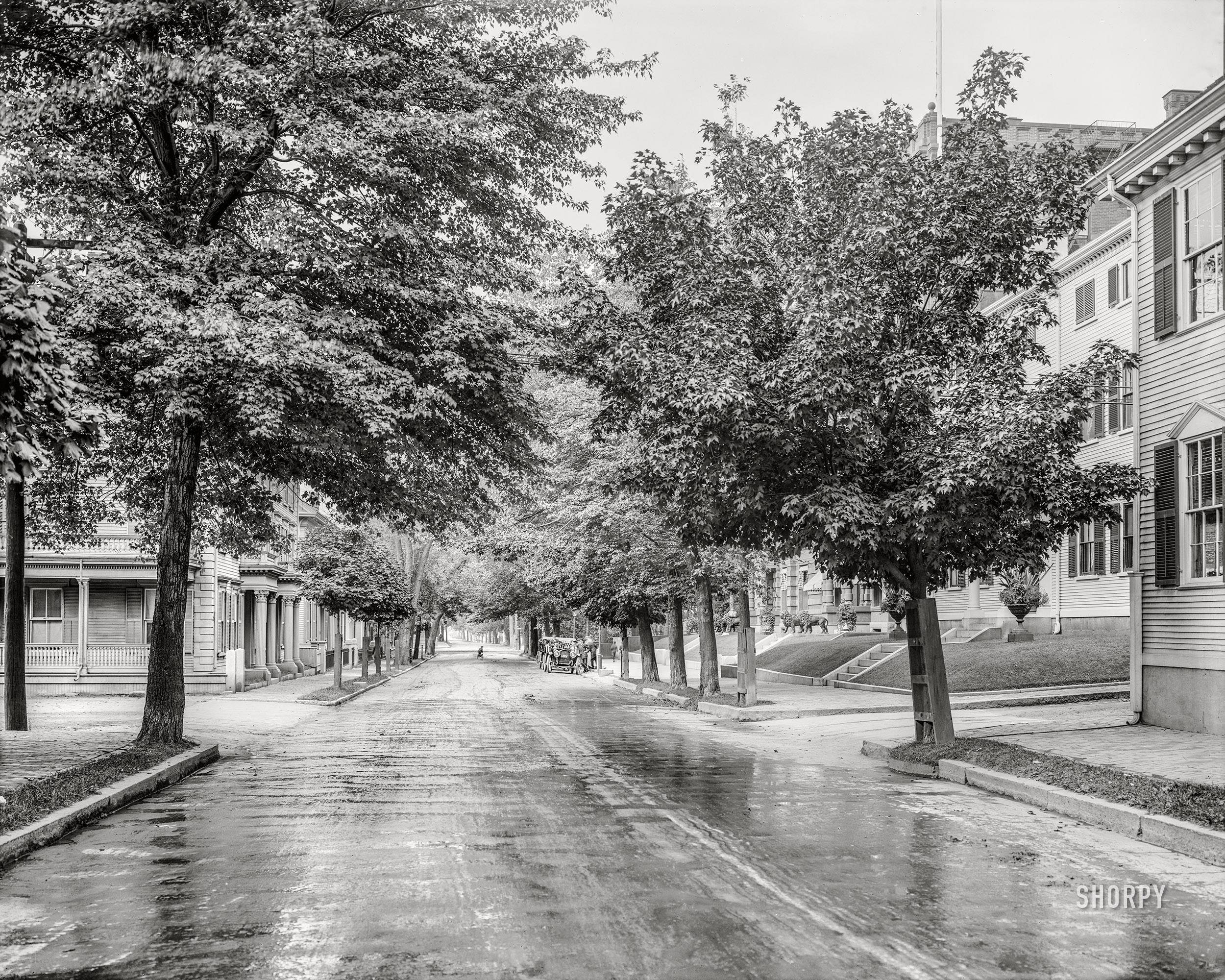 Portsmouth, New Hampshire, circa 1909. "State Street near Rockingham Hotel." Detail of 8x10 inch dry plate glass negative, Detroit Publishing Company. View full size.