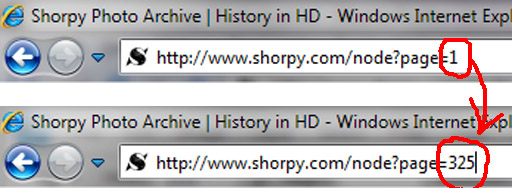 Probably our most frequently asked question is, "How do I get to page XYZ without hitting the 'Next Page' link hundreds of times?" You can easily navigate to any page by going to the Address bar of your browser at the top of the screen. Replace the current page number with the page you want to get to, then hit Enter or Go. The illustration above gives Page 325 as an example. Try it now.